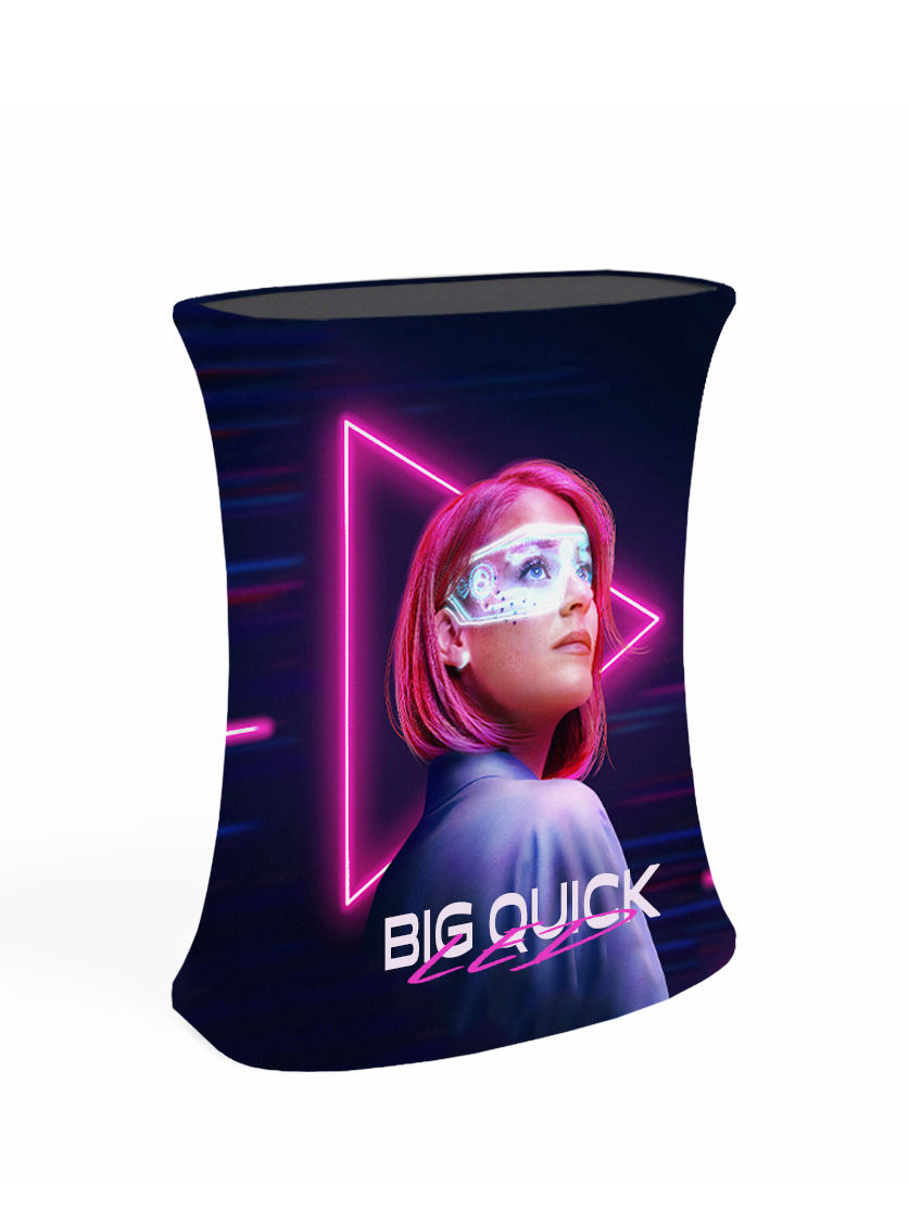 Integrētās pogas galda virsmā ļauj to pilnībā automātiski attaisīt un salocīt – pietiek ar vienu klikšķi. Tas ir vienkāršākais un funkcionālākā risinājums mūsu klāstā. Turklāt tas uzreiz pievērš uzmanību – aprīkots ar LED gaismas sloksnēm - tas izceļas pat lielās izstāžu hallēs.