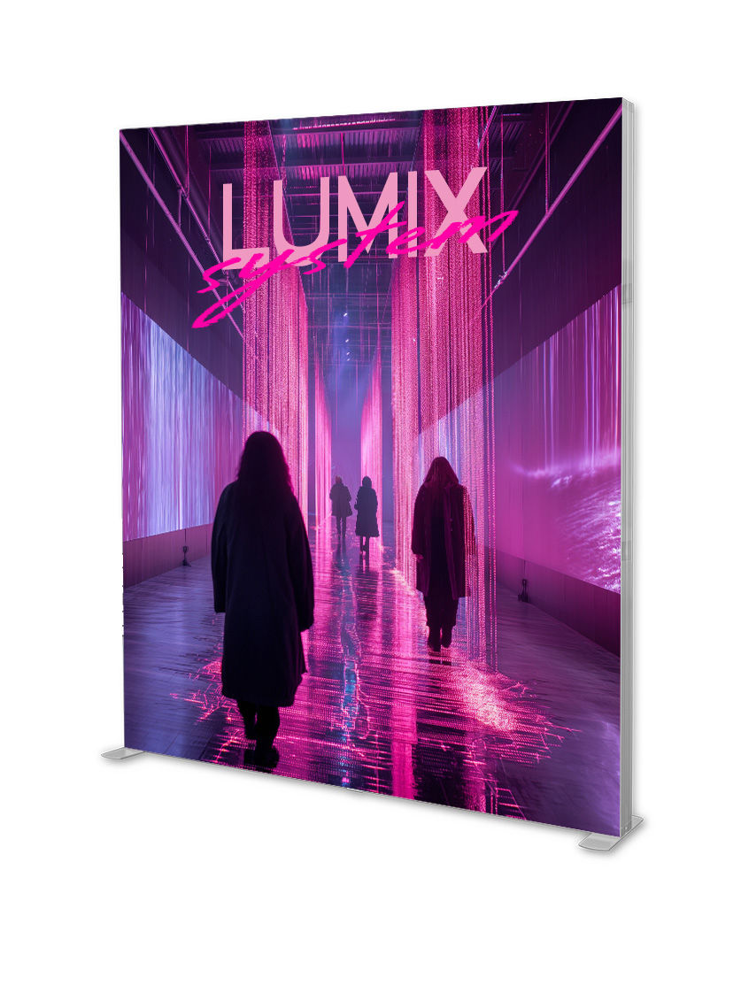 Gaismas kaste LUMIX 200×250 – divpusēja, pamanāma un montējama bez instrumentiem – tās ir tikai dažas no šīs sistēmas priekšrocībām. Vairāki desmiti LED spuldžu garantē unikālu un pārsteidzošu grafikas efektu. Augstu kvalitāti, vieglu montāžu un ilgu kalpošanas laiku, nodrošina biezi alumīnija rāmji un ar silikona lentu piestiprināta izdruka. Izstrādājums ir iepakots izturīgā, polsterētā somā uz riteņiem, kas ievērojami atvieglo tā uzglabāšanu un transportēšanu.Gaismas kastei ir iespējams mainīt izdrukas, tāpēc, ja laika gaitā mainās zīmola vizuālā identifikācija, jums vienkārši nepieciešams iegādāties jaunu izdruku.
